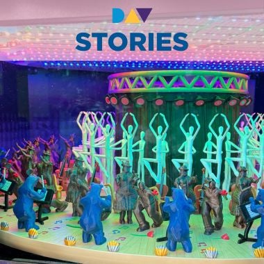 After months of collaboration, we are thrilled to welcome a new magical element in the Galleria - a zoetrope, which is a pre-film animation device that produces the illusion of motion from a series of static drawings, featuring aspects of DAV’s impact within the city.